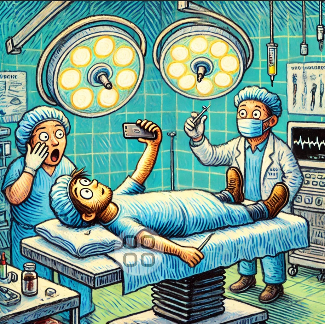 teléfono (전화기), doctores (의사들), jeringa (주사기), quirófano (수술실), luz quirúrgica (수술실 조명), instrumentos quirúrgicos (수술 도구), monitor (모니터), mesa de operaciones (수술대), mascarilla (마스크), paciente (환자)